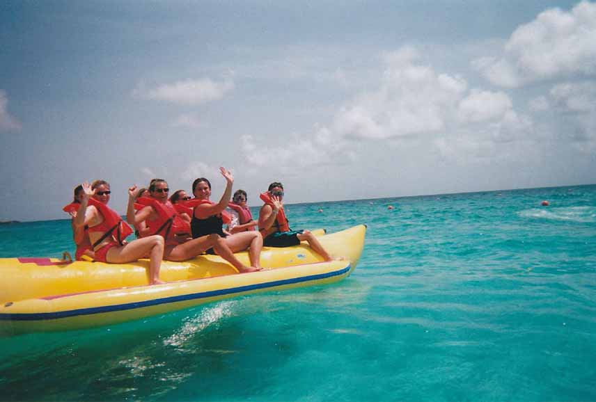Embarking on a banana boat ride in Dubai promises an exhilarating experience for the entire family. This pontoon-like boat, capable of accommodating up to eight passengers on its durable seats, is towed behind a Jet Ski or speedboat. Guided by a certified instructor, the ride’s intensity can be tailored to your preferences, whether you seek a leisurely cruise or an adrenaline-pumping adventure.