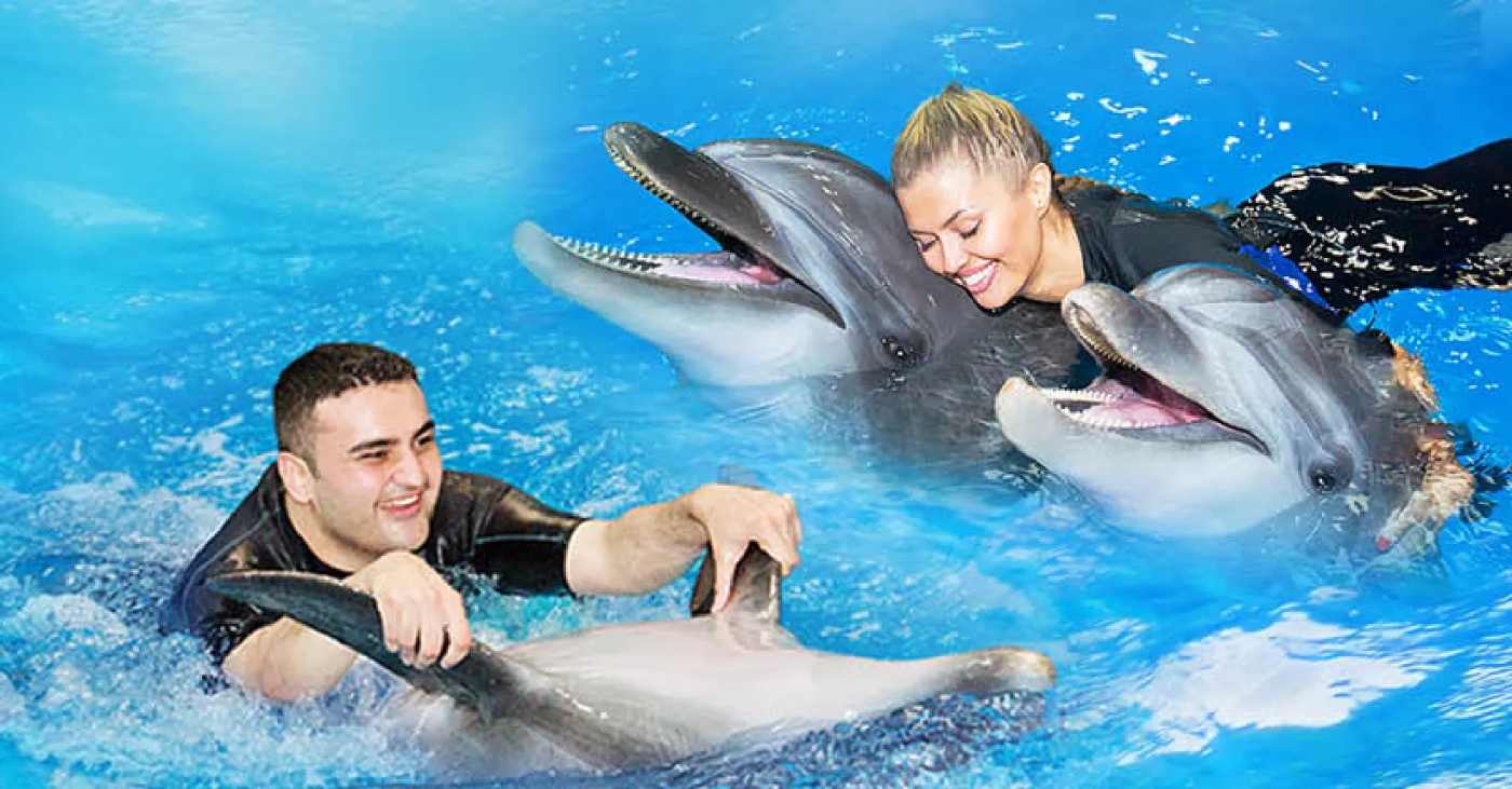 Dolphinarium Dolphin Show Experience a rendezvous with one of the most intelligent mammals, dolphins, at the Dubai Dolphinarium. As the only fully air-conditioned dolphinarium in the city, Dubai Dolphinarium offers a unique opportunity to engage with these remarkable creatures. Spread across 5000 square meters and equipped with state-of-the-art light and sound technology, our dolphinarium provides an immersive experience like no other. The highlight of your visit will be the 45-minute dolphin and seal shows held in our 180-degree amphitheater. The impressive performances of the dolphins and seals are equally enjoyed by both kids and adults. Additionally, guests have the chance to interact directly with these intelligent animals and gain insights into marine life from our expert trainers. Join us at Dubai Dolphinarium for an unforgettable experience that combines entertainment, education, and awe-inspiring moments with some of nature’s most incredible creatures.
